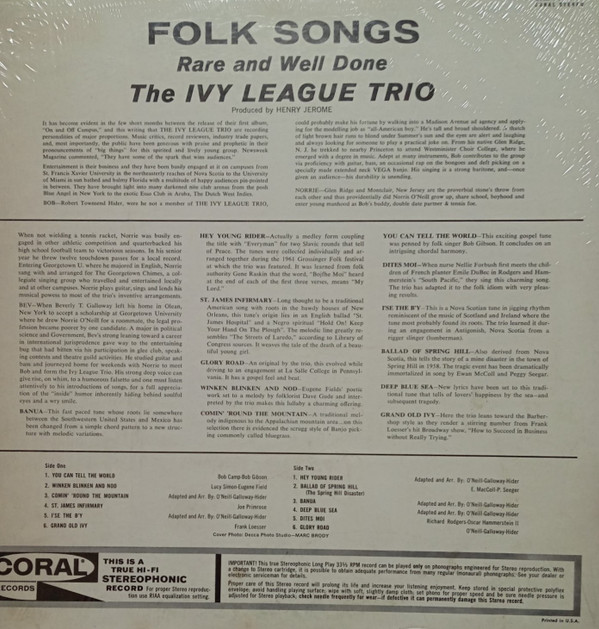 The Ivy League Trio – Folk Songs - Rare & Well Done