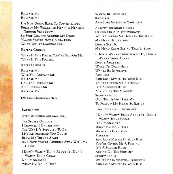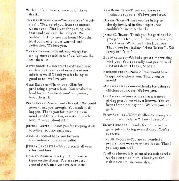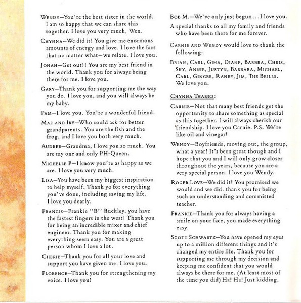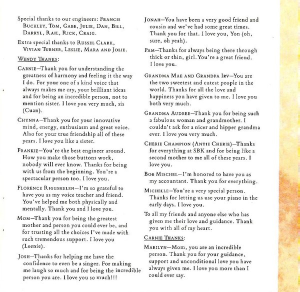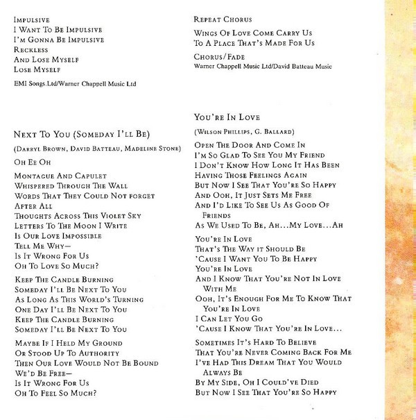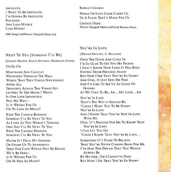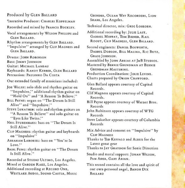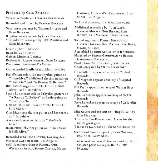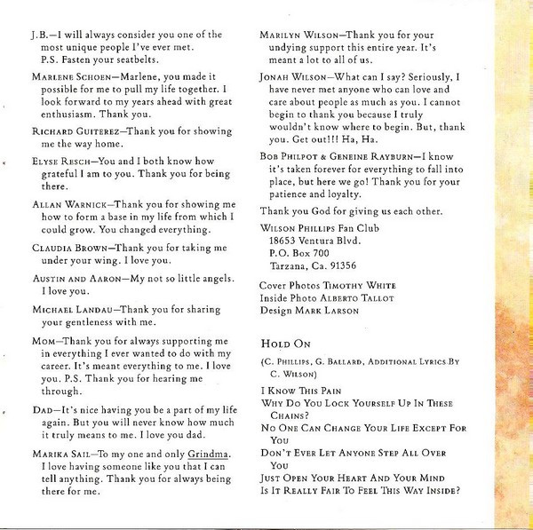 - Written-By tracks 2, 5, 6, 8, 10 – Wilson Phillips