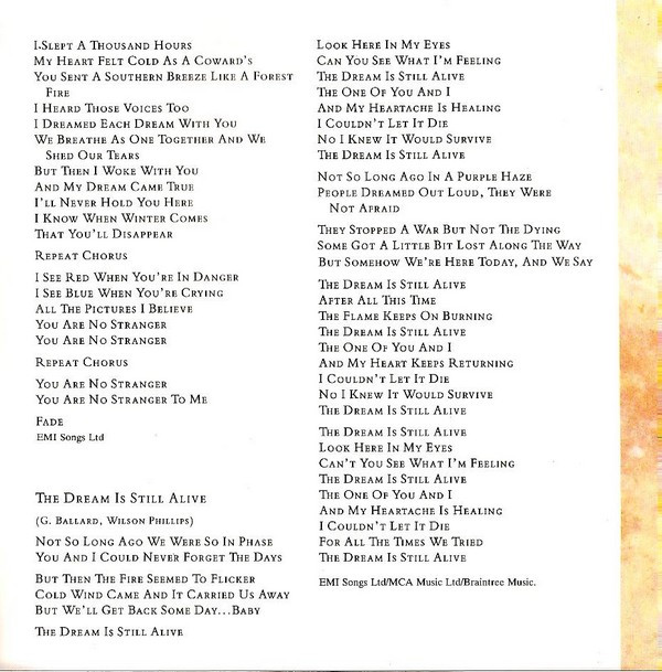 | 10 | The Dream Is Still Alive | 4:09 |