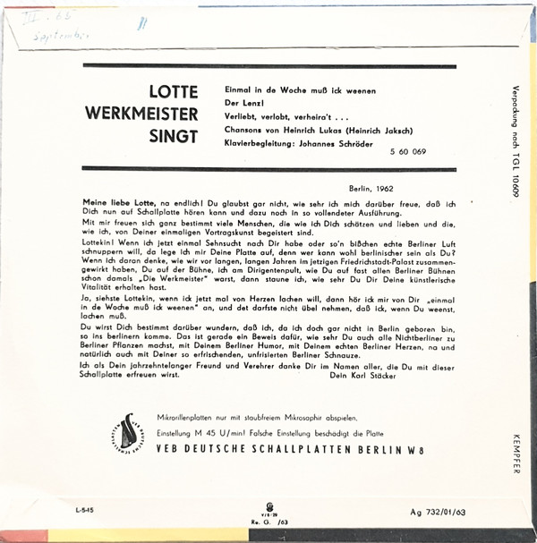 - Record Company – VEB Deutsche Schallplatten Berlin