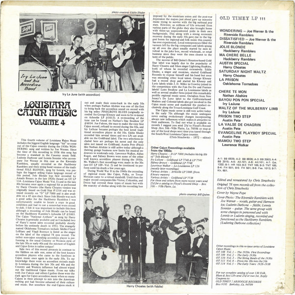Various – Louisiana Cajun Music Volume 4: From The 30s To The 50s