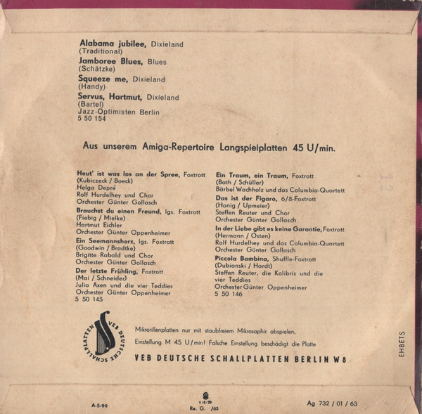 Jazz-Optimisten Berlin – Alabama Jubilee / Jamboree Blues / Squeeze Me / Servus, Hartmut