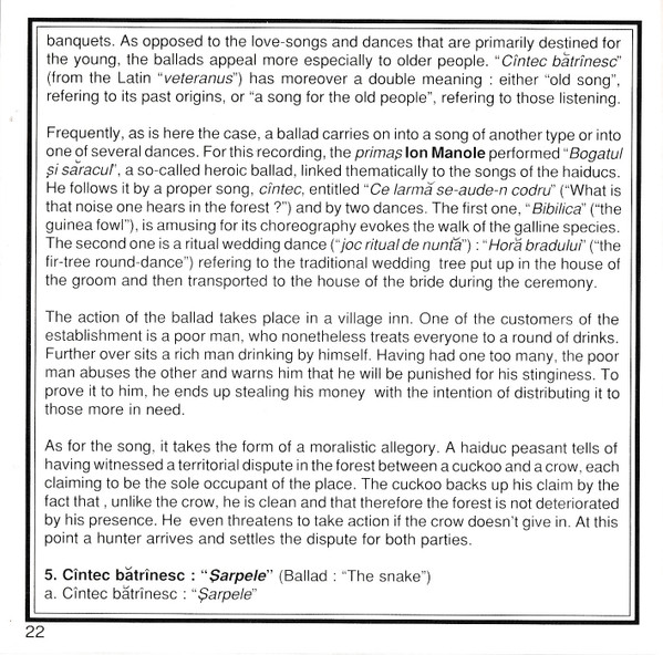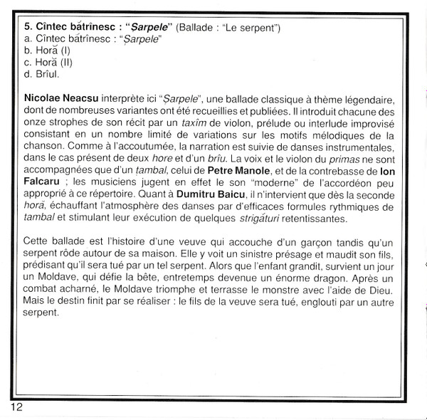 | Cîntec Bătrînesc: "Șarpele" / Ballade: "Le Serpent" / Ballad: "The Snake" |