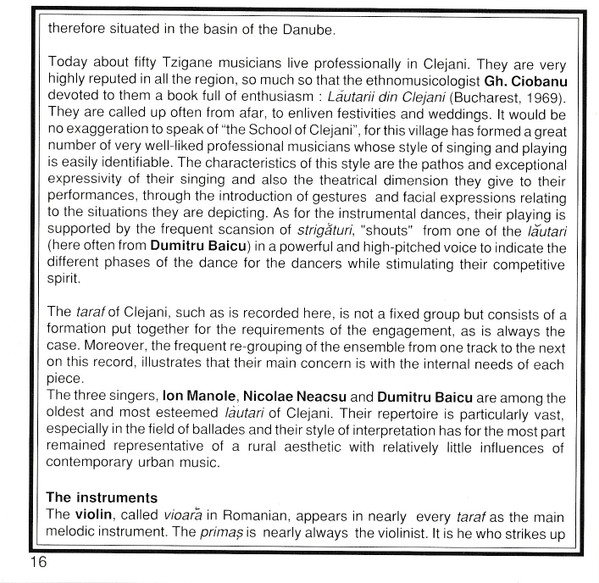 - Recorded At – Institutul de Cercetări Etnologice și Dialectologice