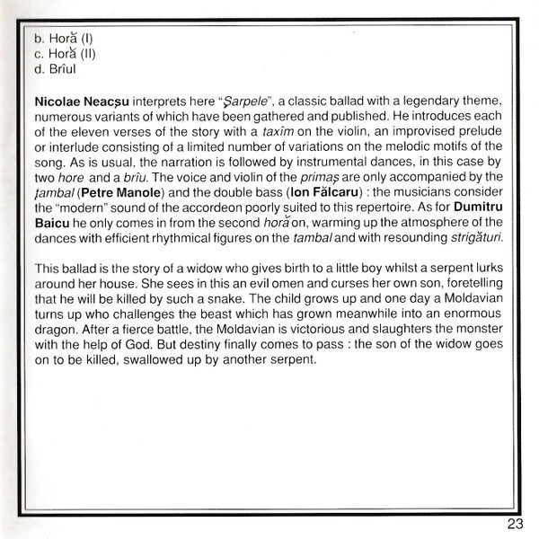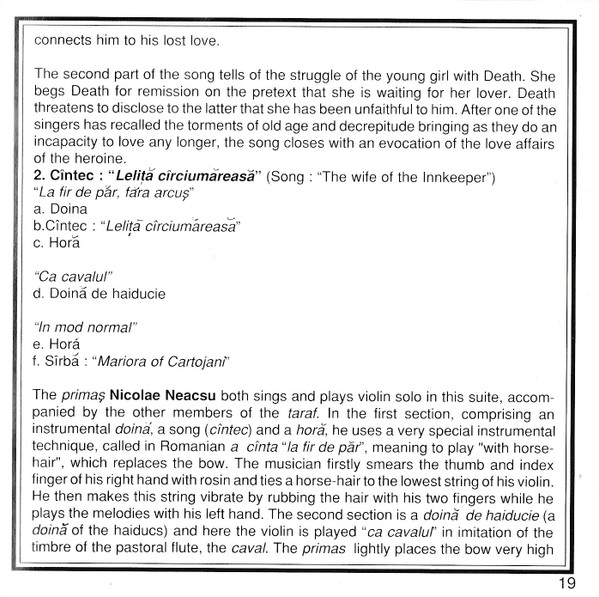 | Cîntec: "Leliță Cîrciumăreasă" / Chanson: "La Femme De L'Aubergiste" / Song: "The Wife Of The Innkeeper" |