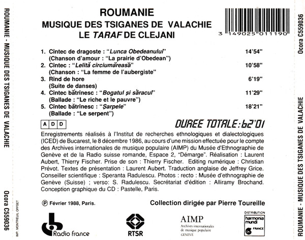 | Лейбл: | Ocora – C559036 Archives Internationales de Musique Populaire – C559036 RTSR (2) – C559036 |