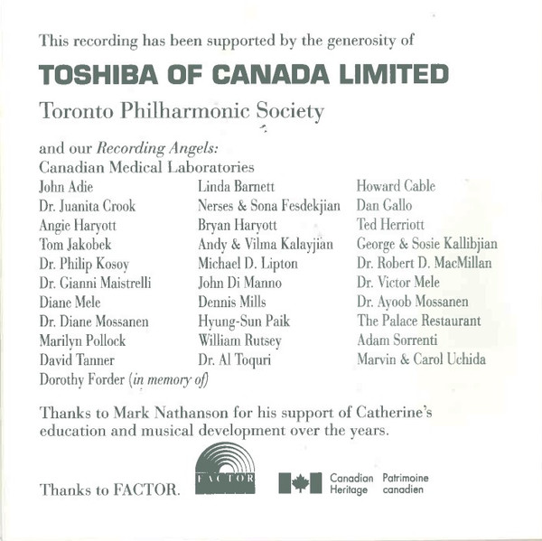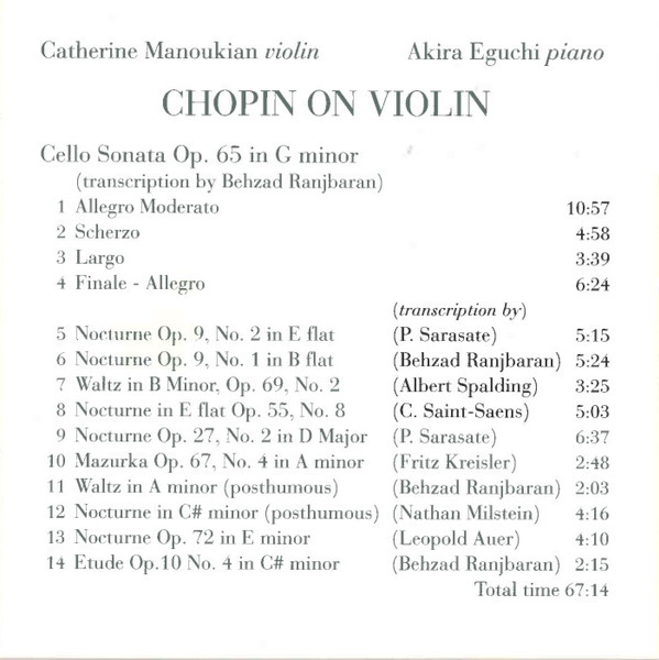 - Violin, Liner Notes – Catherine Manoukian