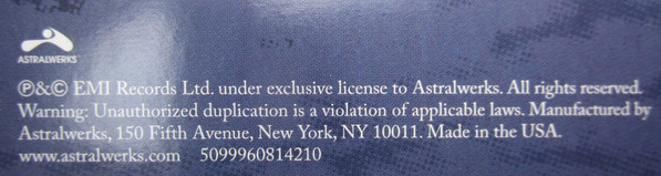 | Лейбл: | Astralwerks – 5099960814210 Astralwerks – ASW 08142 |