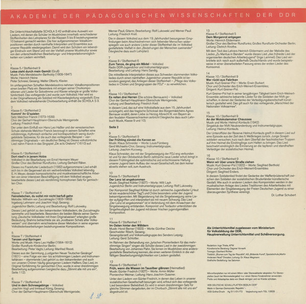 Joachim Vogt Werner Pauli Irmtraud König Chor Der Gerhart-Hauptmann-Oberschule Wernigerode Editor – Werner Pauli Editor – Rolf Lukowsky Leader – Friedrich Krell |