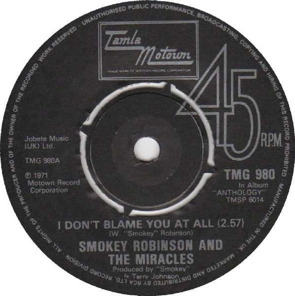 The Miracles – I Don't Blame You At All / Ooo Baby Baby