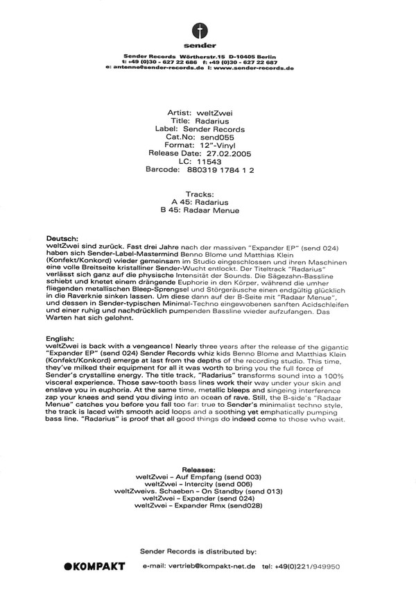 | Лейбл: | Sender Records – sender 055 |