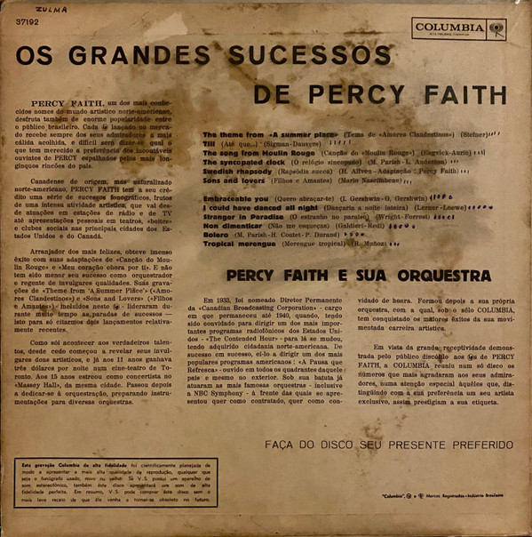 Percy Faith & His Orchestra – Os Grandes Sucessos De Percy Faith