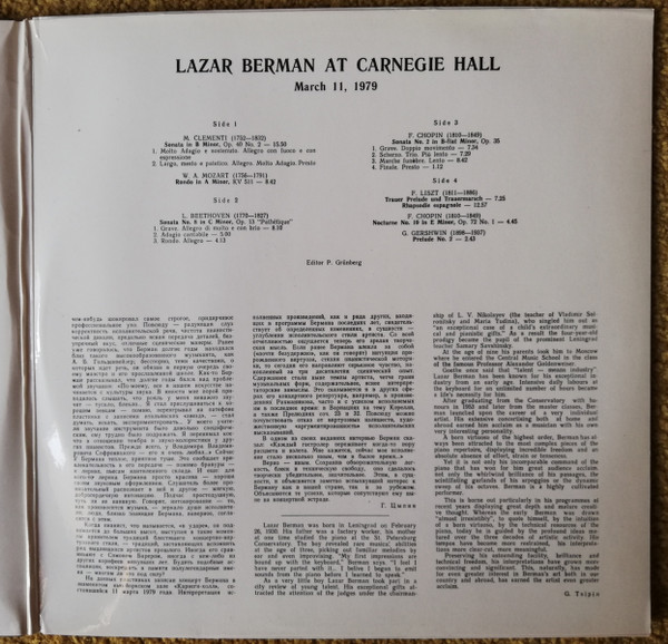 Lazar Berman – Live At Carnegie Hall