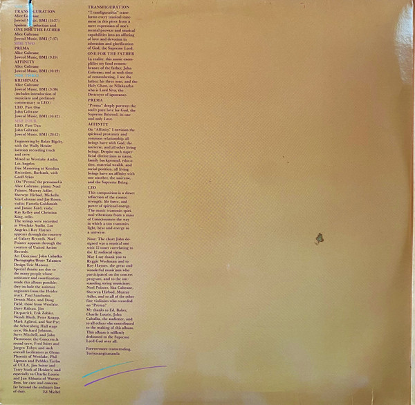 - Piano, Organ, Liner Notes – Alice Coltrane
