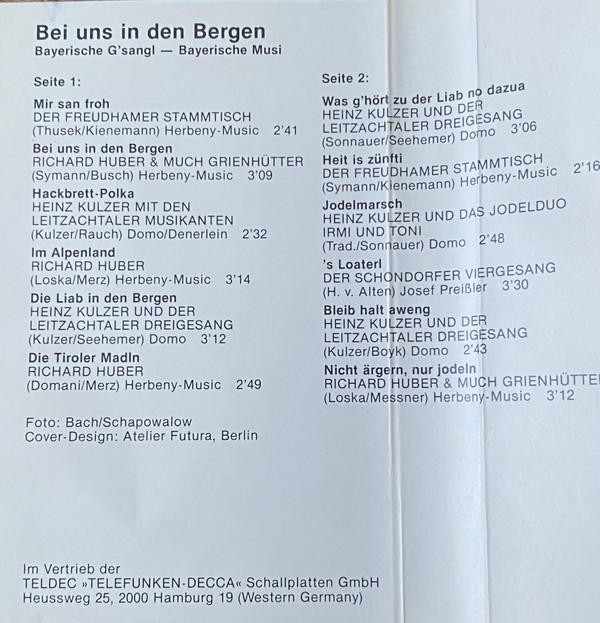 Various – Bei Uns In Den Bergen (Bayerische G'sangl - Bayerische Musi)