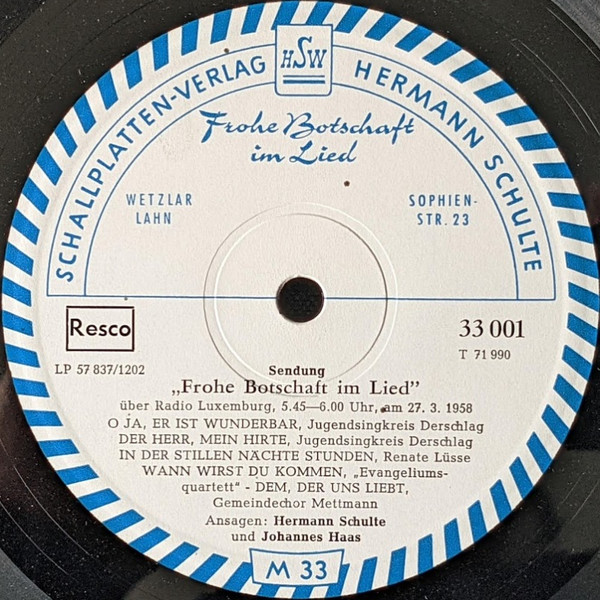 Sendung "Frohe Botschaft Im Lied" über Radio-Luxemburg, 5:45-6:00 Uhr, Am 27.3.1958