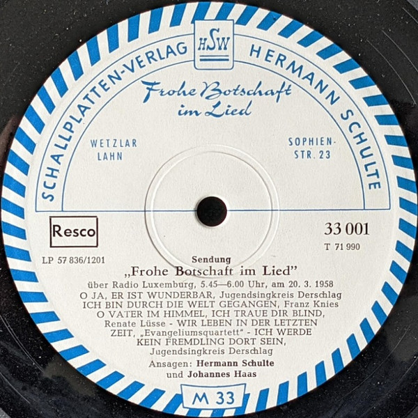 Sendung "Frohe Botschaft Im Lied" über Radio-Luxemburg, 5:45-6:00 Uhr, Am 20.3.1958