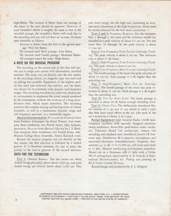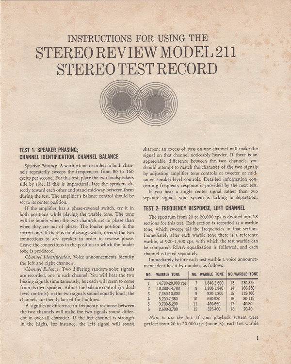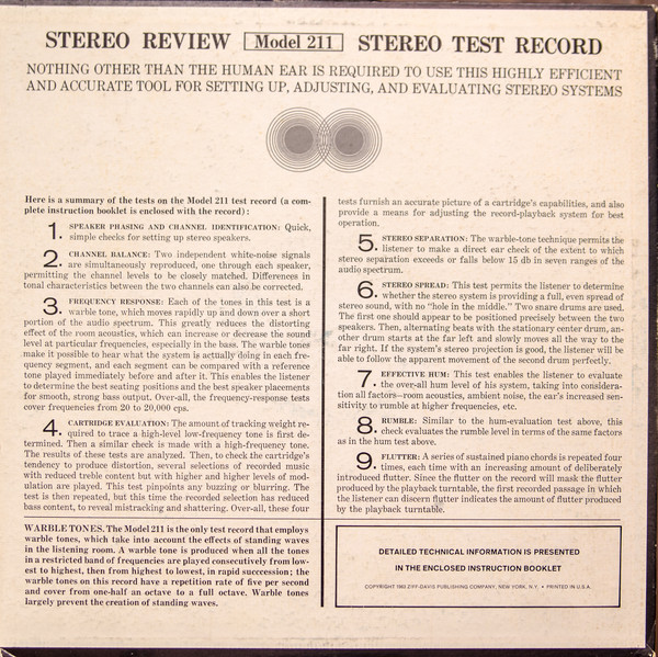 Неизвестный исполнитель – Stereo Test Record For Home And Laboratory Use - Model 211