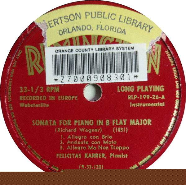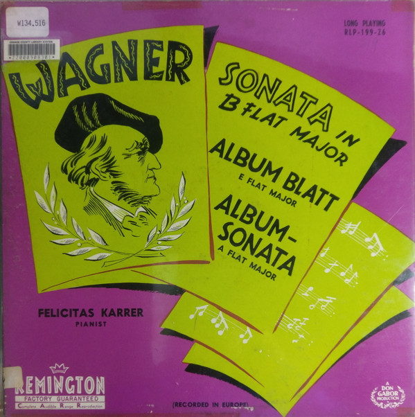 Richard Wagner – Sonata In B Flat Major / Album Blatt E Flat Major / Album Sonata A Flat Major