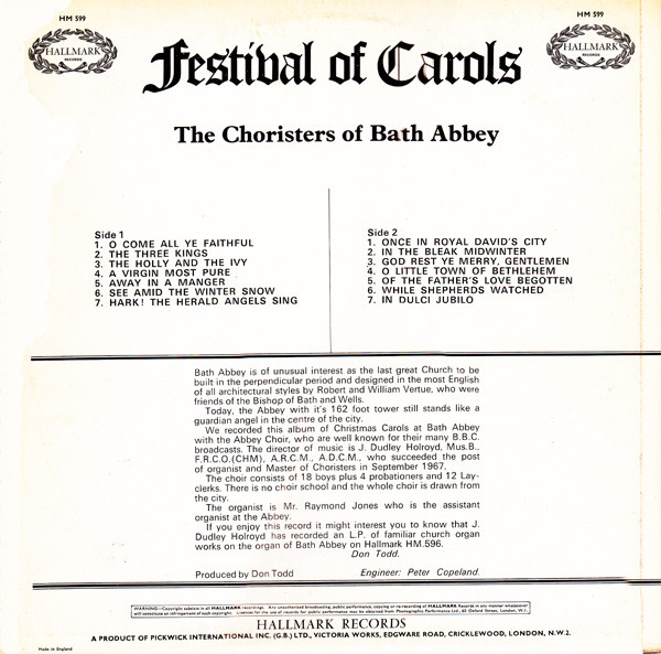 - Recorded At – Bath Abbey