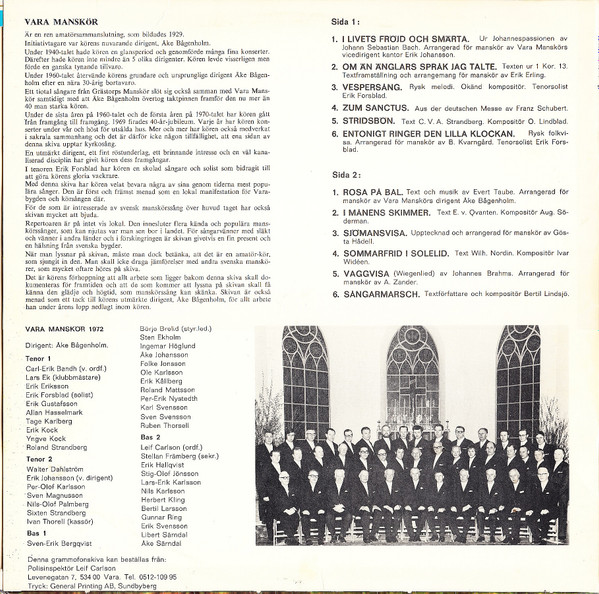 - Tenor Vocals [2], Conductor [V. Dirigent] – Erik Johansson (10)