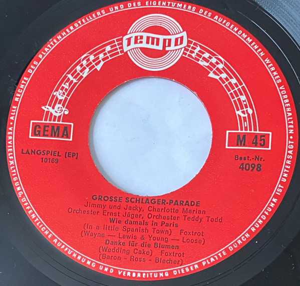 Orchester Teddy Todd Charlotte Marian Ernst Jäger Und Sein Orchester Jimmy And Jacky Written-By – Carl Ulrich Blecher Written-By – Addy Baron Written-By – Bernice Ross |