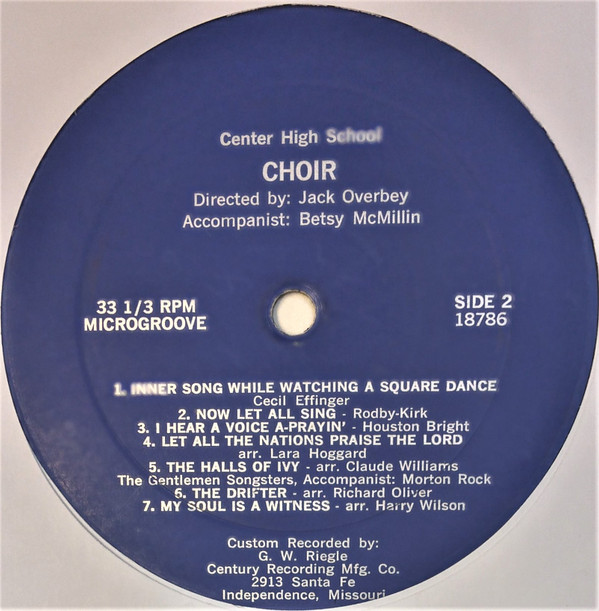 The A Cappella Choir Of Center Senior High School Written-By – Theron Kirk Written-By – Walter Rodby |