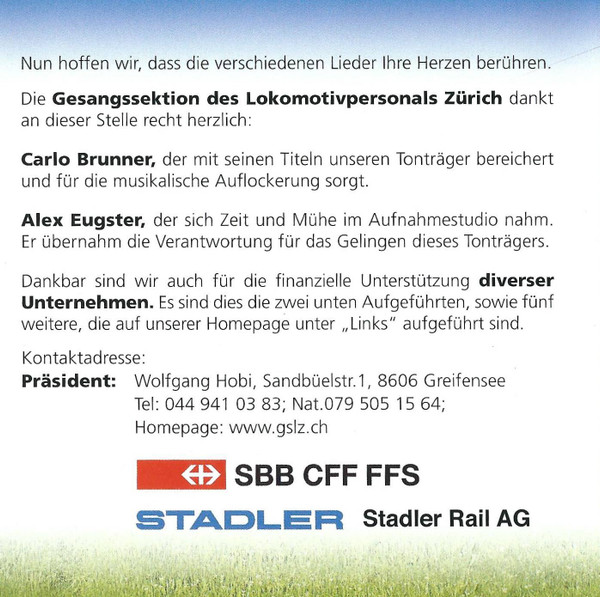 Gesangssektion Des Lokomotivpersonals Zürich – Frei Das Lied