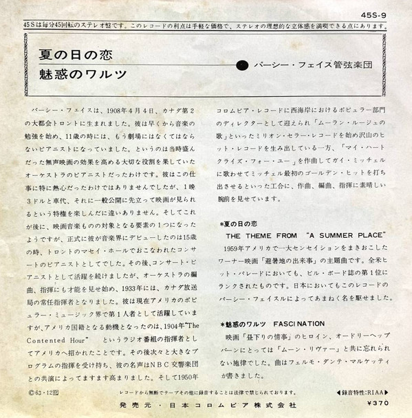 Percy Faith & His Orchestra – The Theme From 'A Summer Place' / Fascination