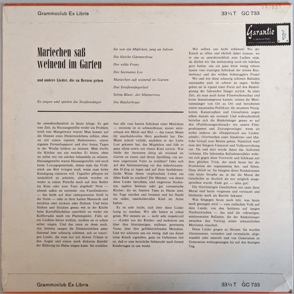 Die Straßensänger – Mariechen Sass Weinend Im Garten