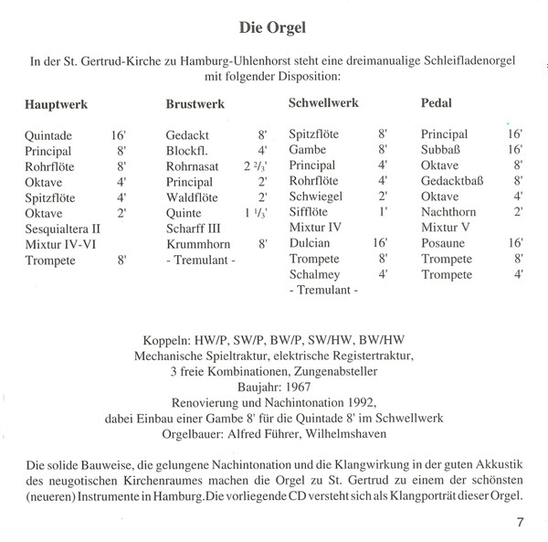 Uwe Bestert – Orgelmusik In St. Gertrud Hamburg (Uwe Bestert An Der Führer-Orgel)