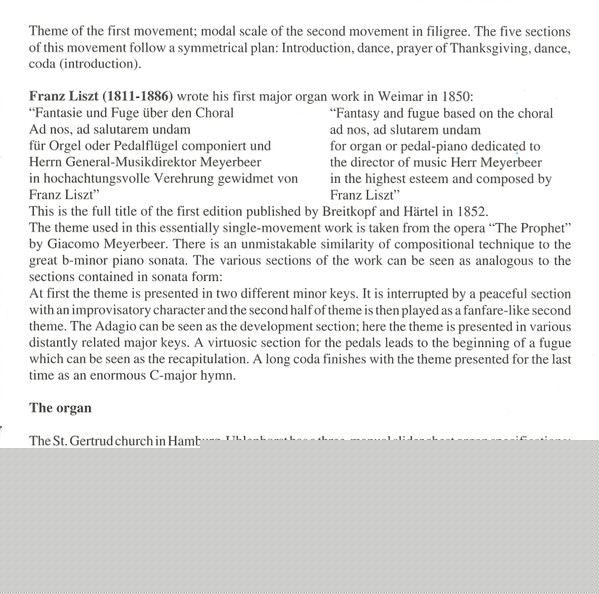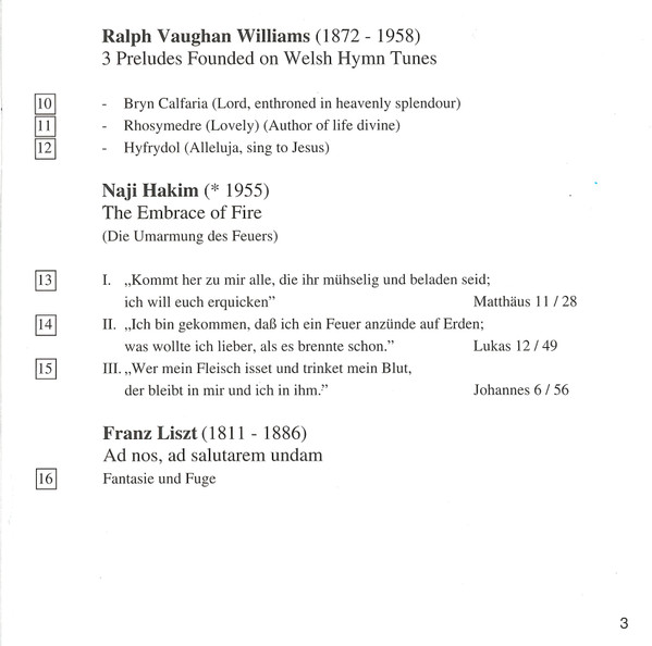 | 16 | Ad Nos, Ad Salutarem Undam - Fantasie Und Fuge | 29:58 |