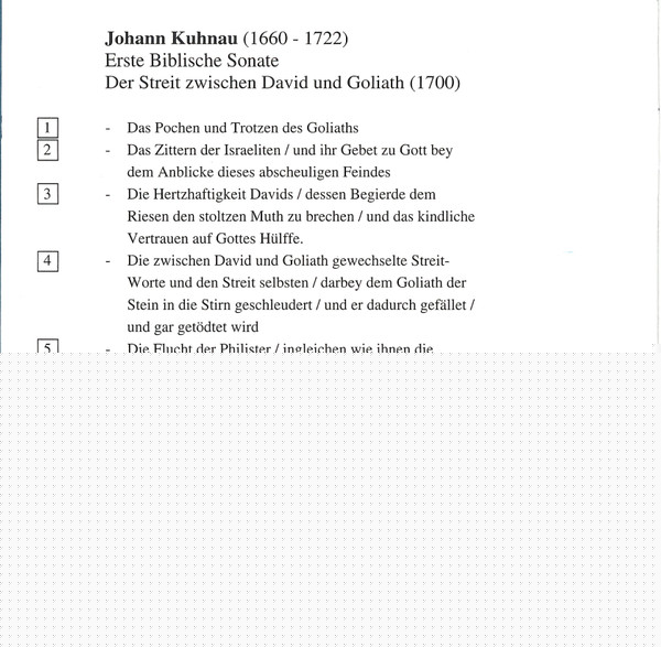 | Erste Biblische Sonate : Der Streit Zwischen David Und Goliath (1700) | |||