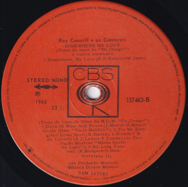 Ray Conniff And The Singers – Somewhere My Love E Outros Sucessos