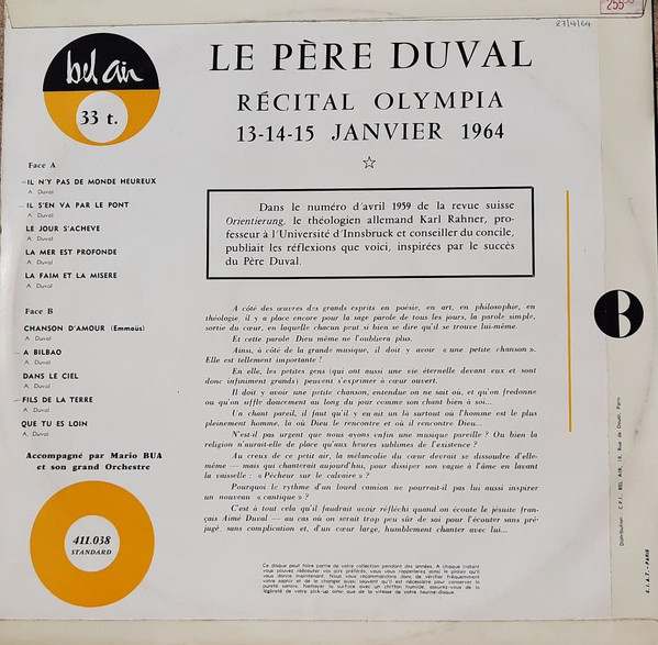 Aimé Duval – Recital Olympia 13-14-15 Janvier 64