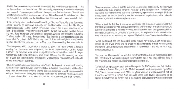 - Liner Notes ["Carlos Melero On Recording Bill Evans In Buenos Aires"] – Carlos Melero