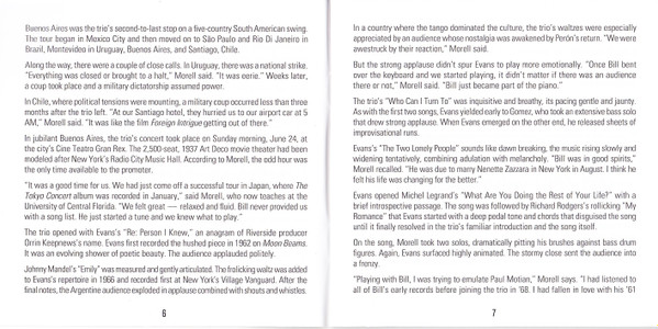 - Liner Notes ["A Magical Concert: Marty Morell Reminisces About Playing With Bill Evans In Buenos Aires"] – Marty Morell