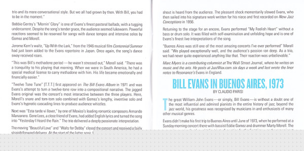 - Liner Notes ["Bill Evans In Buenos Aries, 1973"] – Claudio Parisi