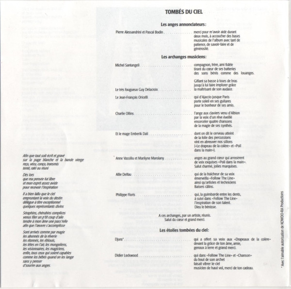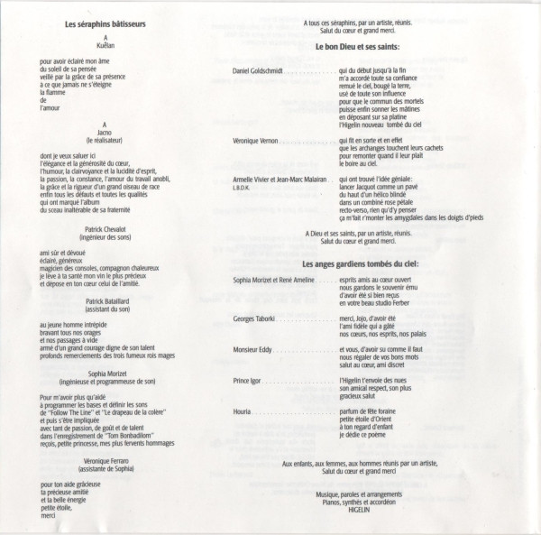- Arranged By, Piano, Synthesizer, Accordion – Jacques Higelin