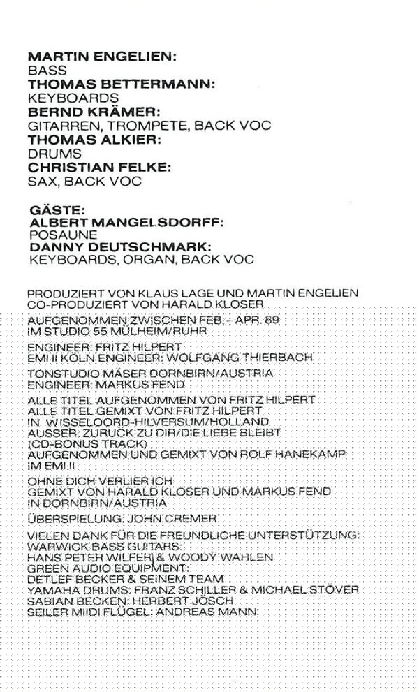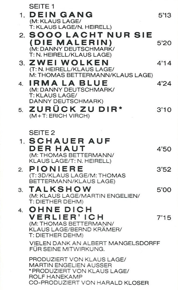 Lyrics By – N. Heirell Lyrics By – Klaus Lage Music By – Thomas Bettermann Music By – Klaus Lage Soloist – Bernd Krämer |