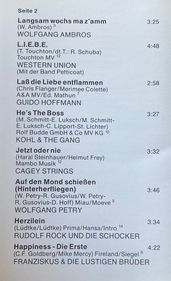 Kohl & The Gang Written-By – Ernst Luksch Written-By – Christoph Lipport Written-By – Stefan Lichter Written-By – Matthias Schmitt |