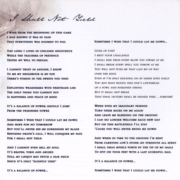 | 1-8 | I Shall Not Yield |
