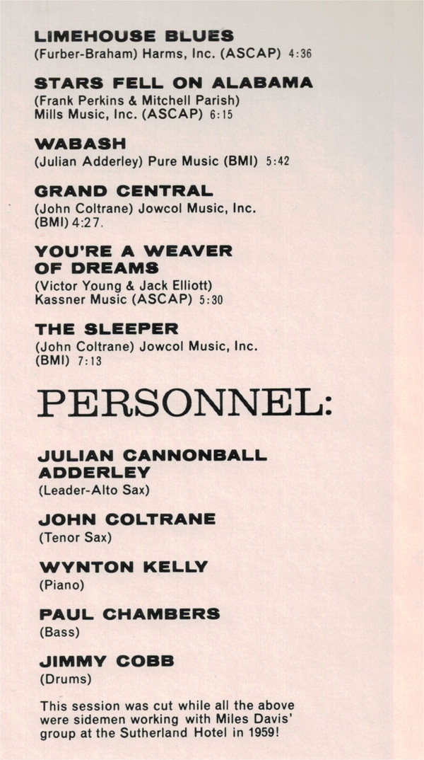 - Leader, Alto Saxophone – Cannonball Adderley