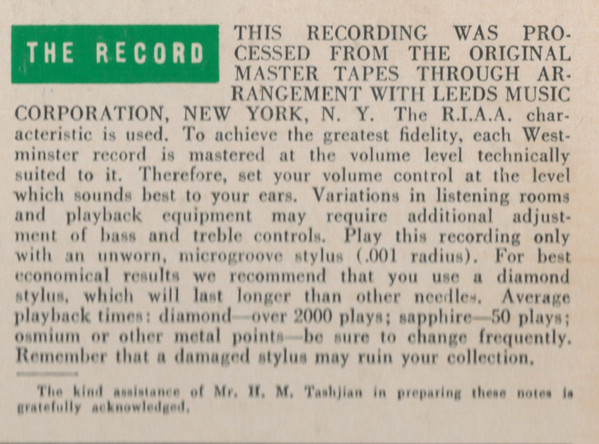 - Liner Notes – H. M. Tashjian