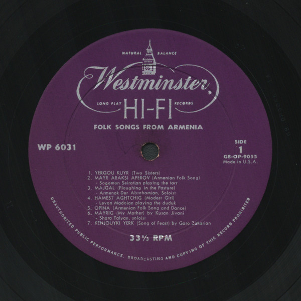 Various – Folk Songs From Armenia