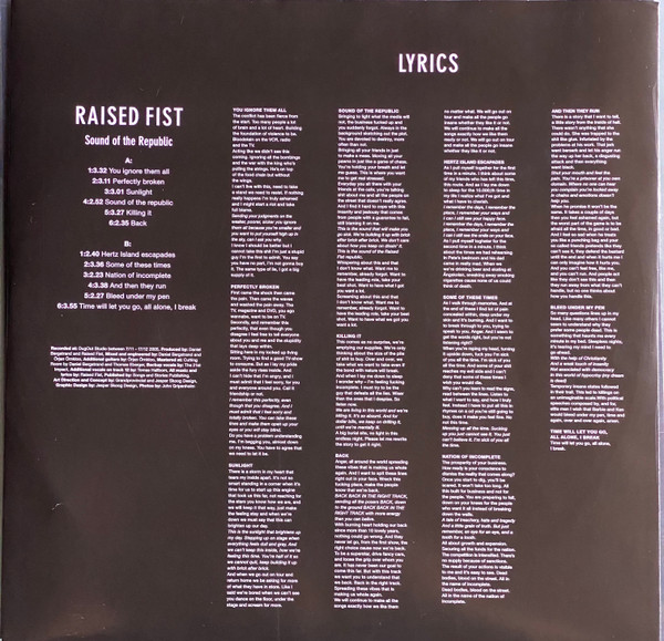 - Music By, Lyrics By – Raised Fist