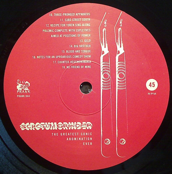 - Written-By, Composed By, Performer [Played], Other [And Utterly Demolished By] tracks A1 to B17 – Scrotum Grinder