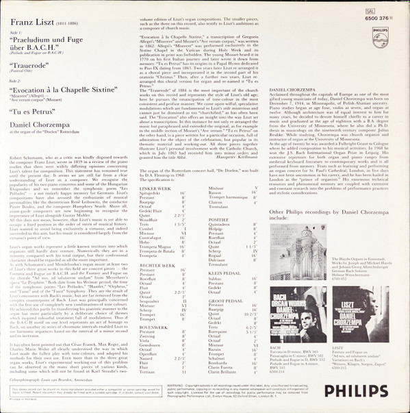 Franz Liszt – Praeludium Und Fuge Über B.A.C.H. / Trauerode / Evocation À La Chapelle Sixtine / Tu Es Petrus