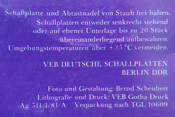 - Record Company – VEB Deutsche Schallplatten Berlin