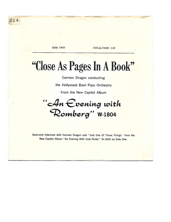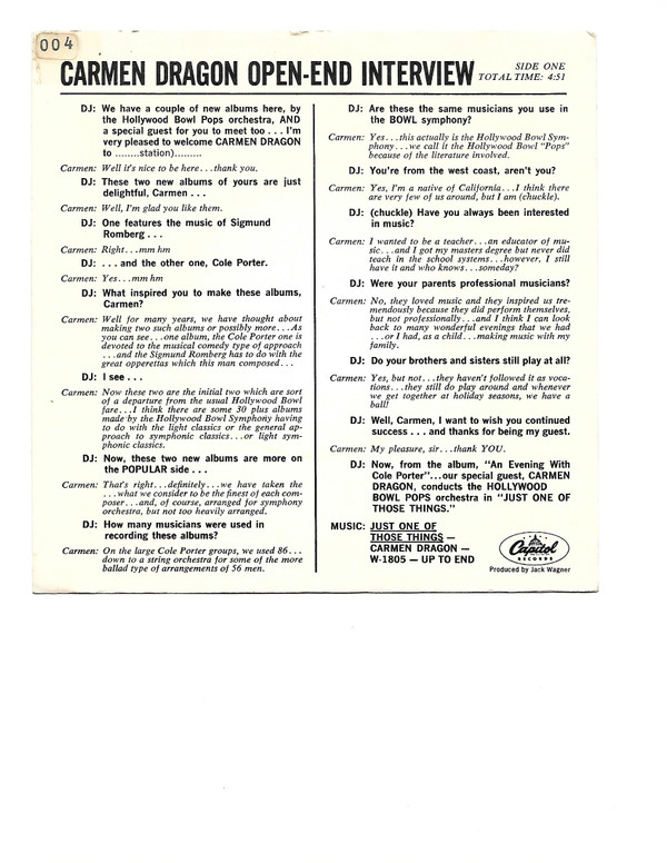 Carmen Dragon – Open-End Interview/Close as Pages in a Book